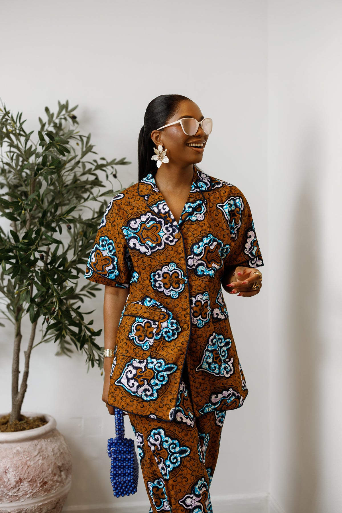 Step into effortless statement style with our African Print Shirt Set, made for the days you want to look put together without doing the most. This matching set features a crisp collared shirt with clean contrast piping for that elevated finish, paired with easy, flowy pants that move with you. It’s the kind of set that gives “I’m booked and busy” energy. Whether you are headed to brunch, running errands, or pulling up to a casual link up.