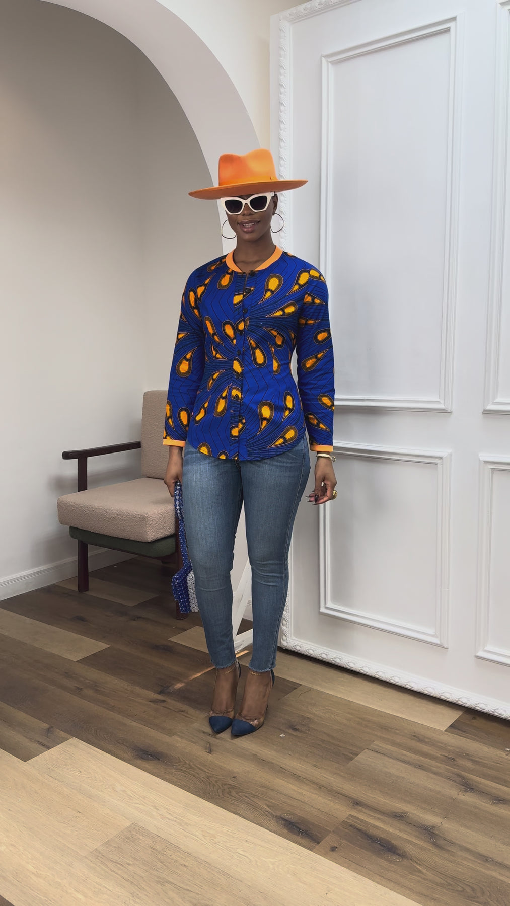 This African print button-down top is made to stand out while keeping you comfy. It features a polo neckline that gives it a clean, polished look, and long sleeves finished neatly at the wrist. The bold Ankara print brings the right amount of pop to your outfit, and since it’s unlined, it feels light and breathable perfect for everyday wear.