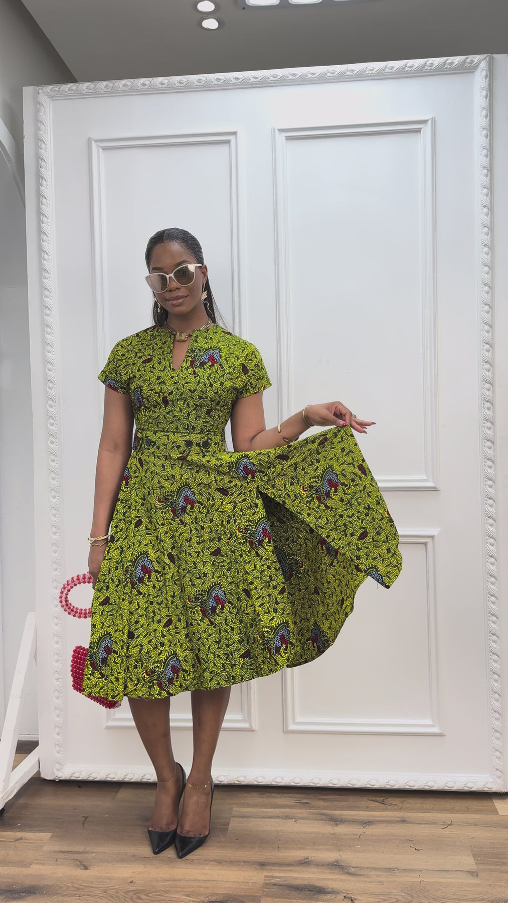 The flattering, snatched but comfy piece you’ll keep reaching for. Designed to softly define the waist, it features a back zipper plus an invisible front zip you can wear fully closed for a sleek finish or slightly open when you want a little extra edge. The button detail at the waistline enhances your shape, while the African wax cotton drapes beautifully for an effortless, elevated look. Pair it with tights and boots when it’s cool out, or wear it solo when the weather warms up.