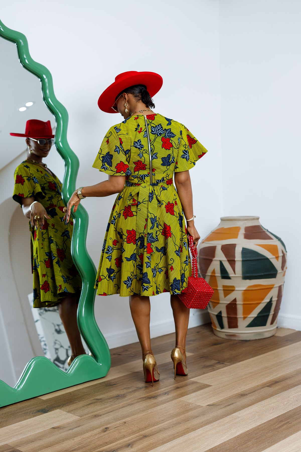 TOSIN AFRICAN PRINT FLUTTER SLEEVE DRESS